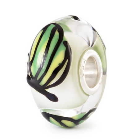 Smaragd- und moosgrüne Nuancen verschmelzen unter zarten Schmetterlingsflügeln. In kunstvollem Glas von Hand gefertigt, trägt jeder Bead die Ruhe eines tiefen Waldes in sich, jene stille Magie, die den Atem langsamer werden lässt und jeden Schritt in Staunen taucht.